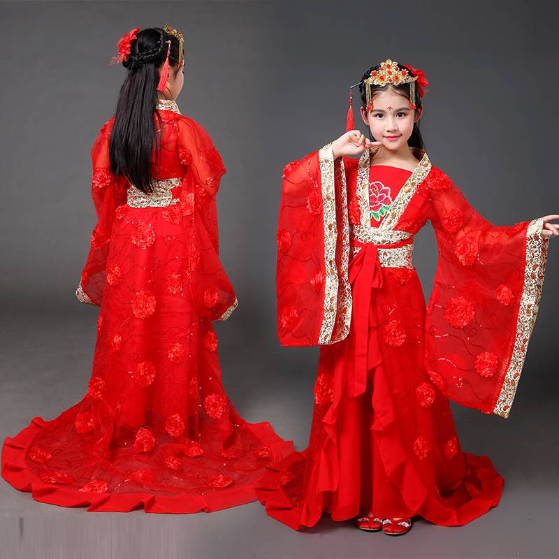 新款儿童古装女童汉服拖尾小贵妃装唐朝公主仙女装