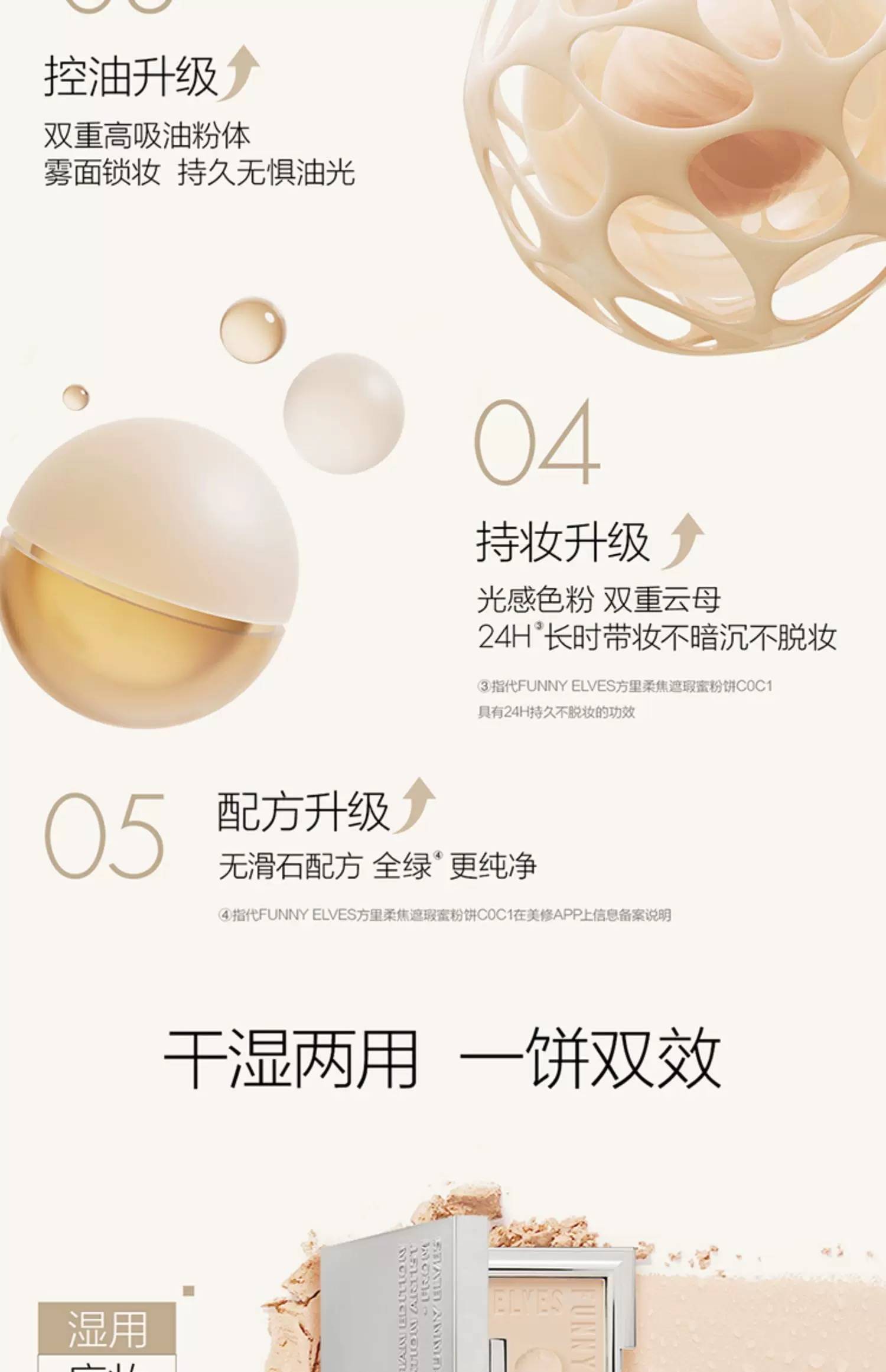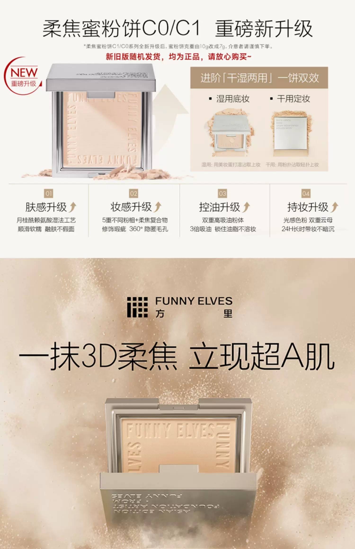 FunnyElves 方里柔焦蜜粉饼12g 定妆粉饼持久控油贴肤磨皮散粉 除港澳台地区全部包邮 官方旗舰店发货