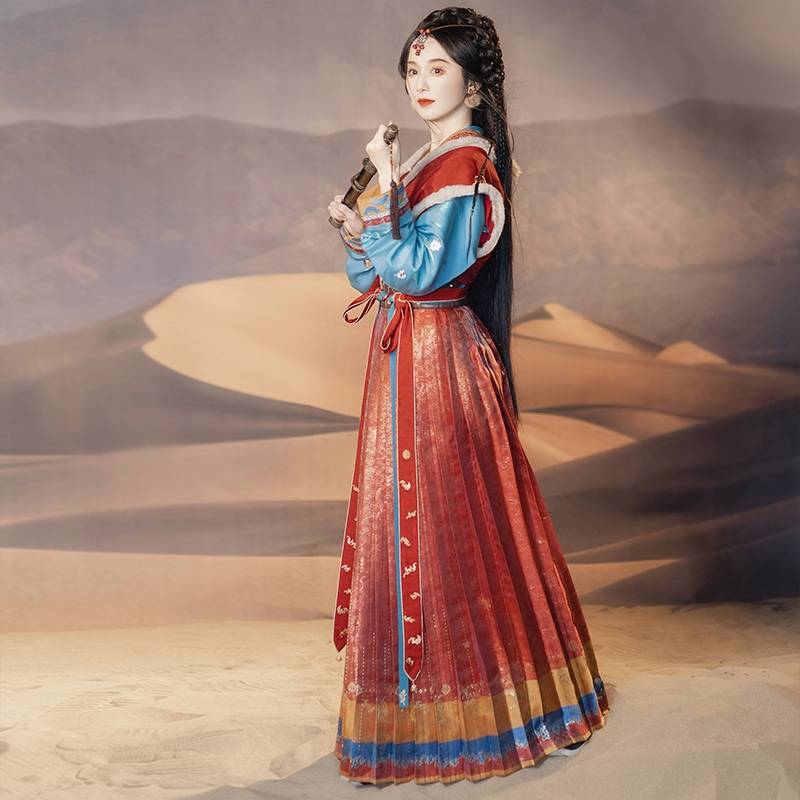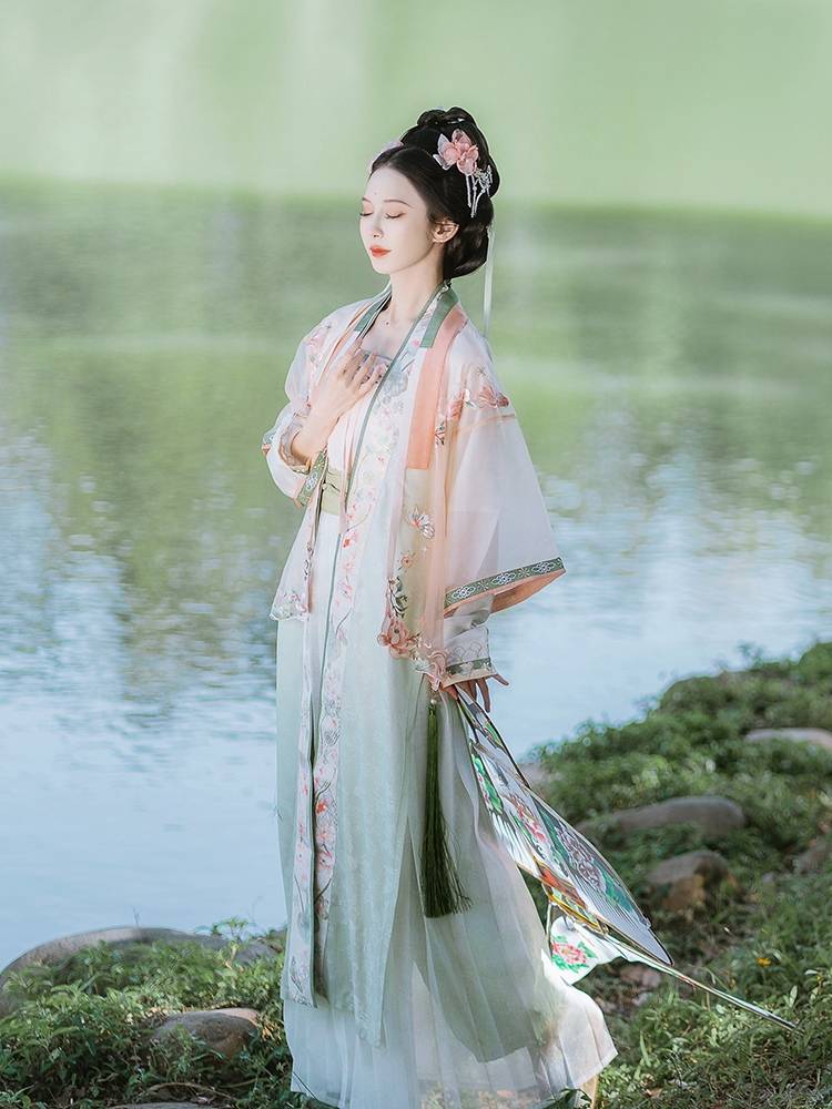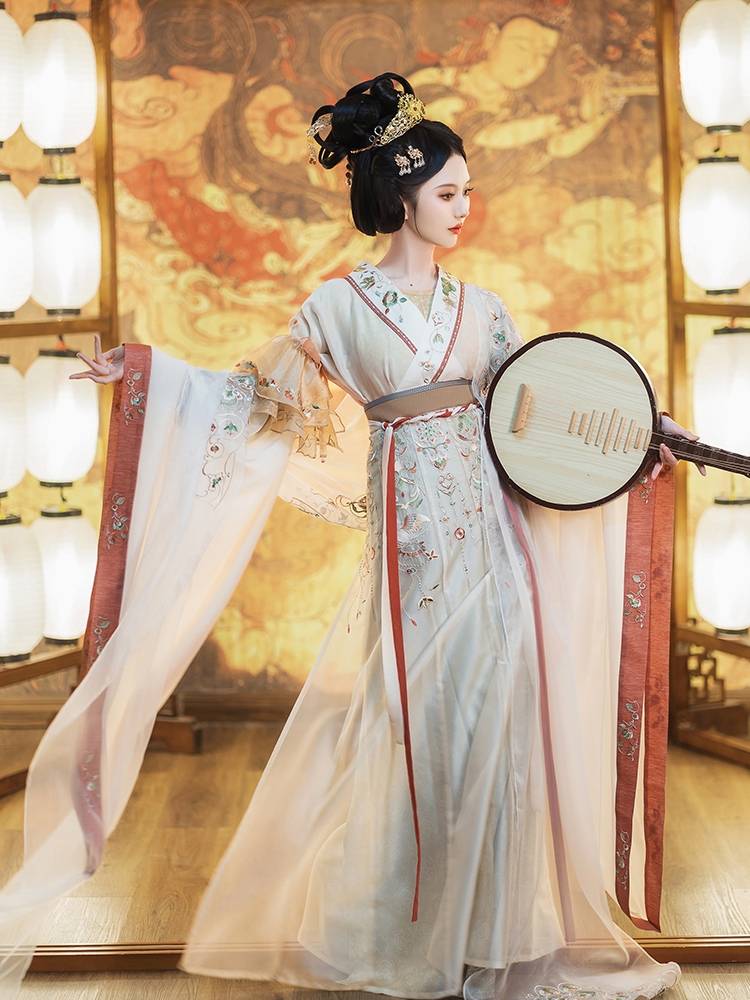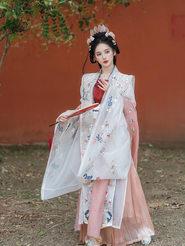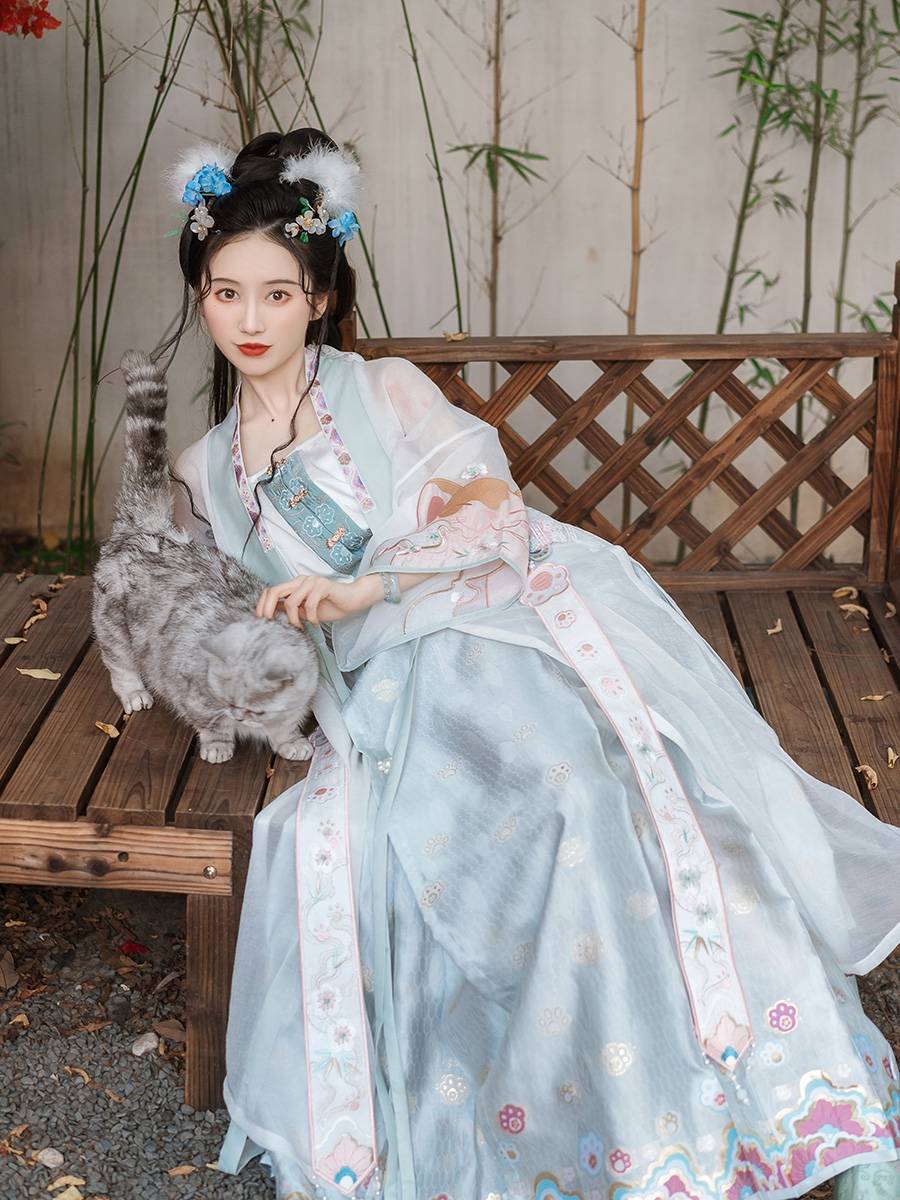钟灵记-踏歌行:圆领大袖初唐壁画16破交窬裙羽袖披帛女改良汉服