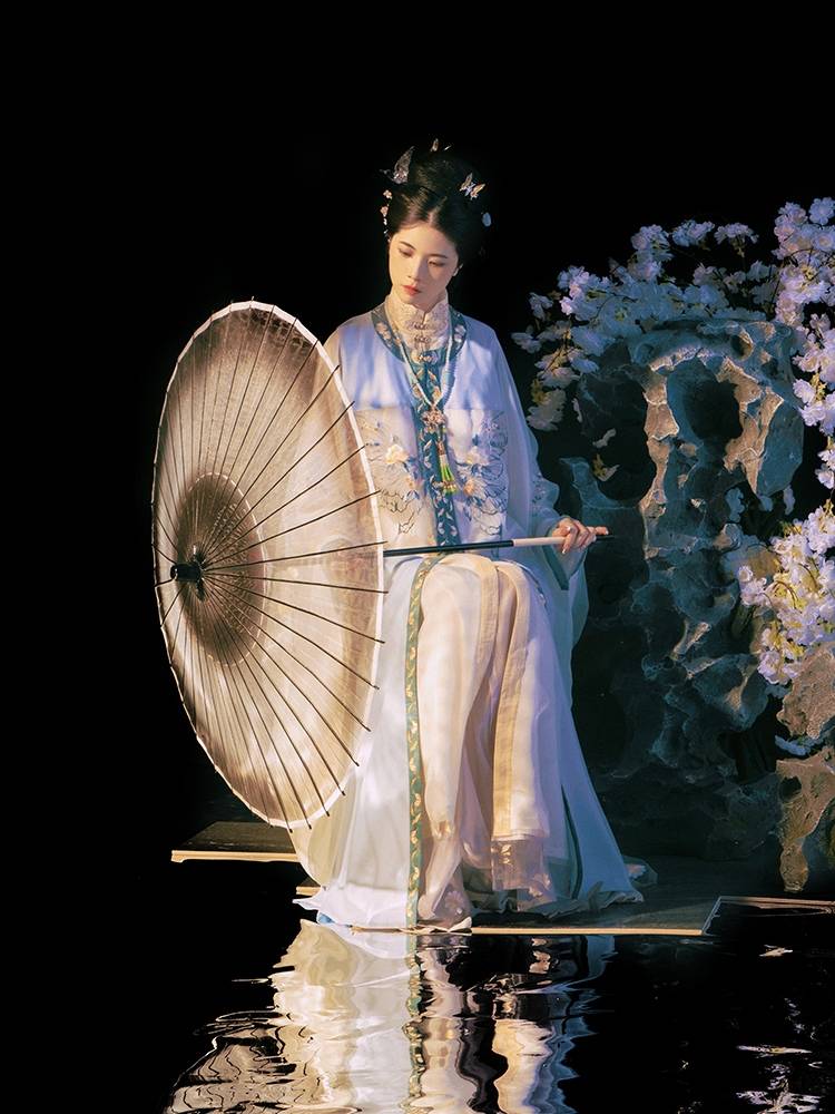 钟灵记-晚归舟:宋朝长褙子貉袖齐腰古裙宋抹吊坠配饰汉服女春夏