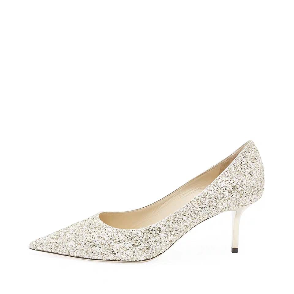 金色闪片尖头女士高跟鞋单鞋婚鞋