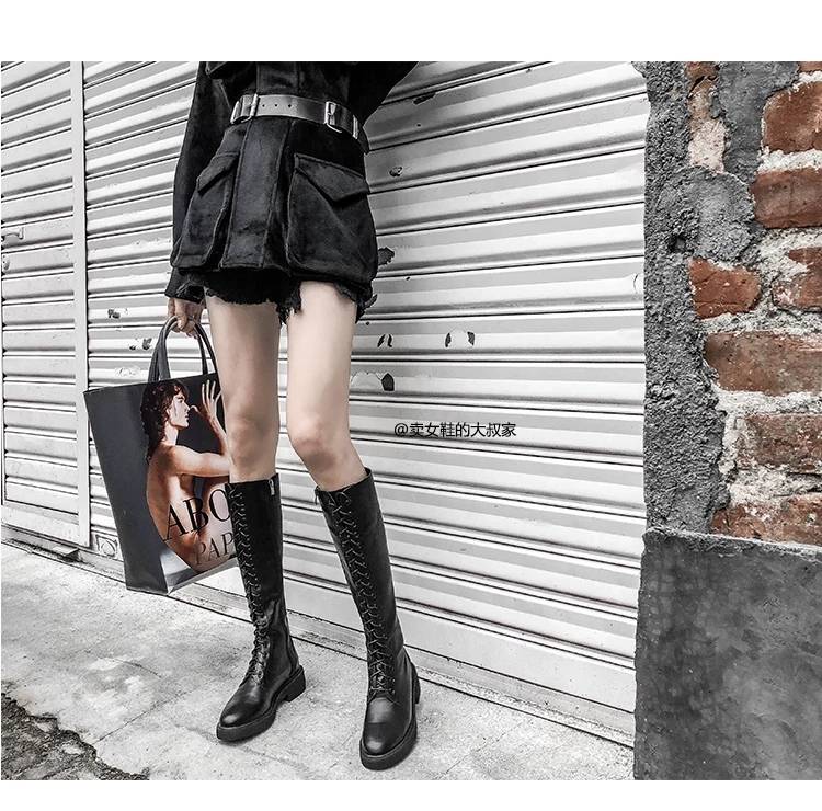 2019秋冬新款圆头粗跟高筒长靴侧拉链骑士靴