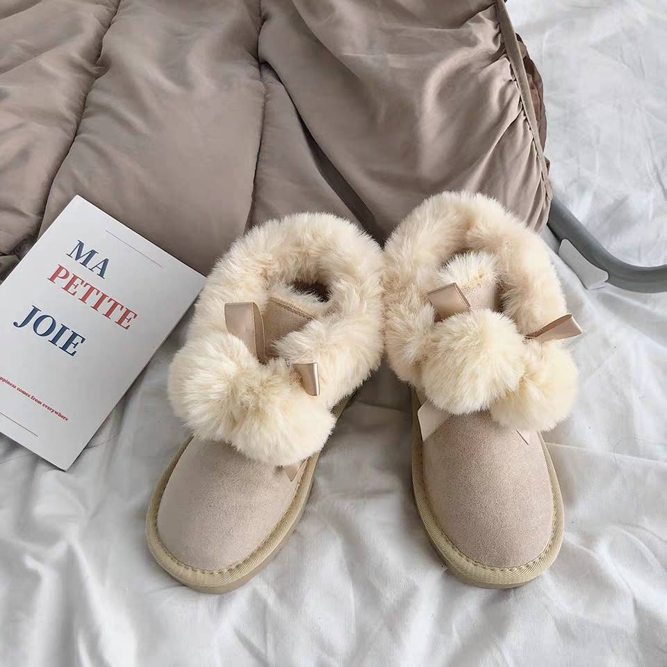 雪地靴2019新款加厚时尚面包鞋中筒冬季加绒时尚一脚蹬丝带棉鞋