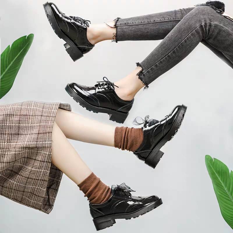 ins英伦风中跟小皮鞋女百搭网红2019秋冬季新款黑色厚底单鞋