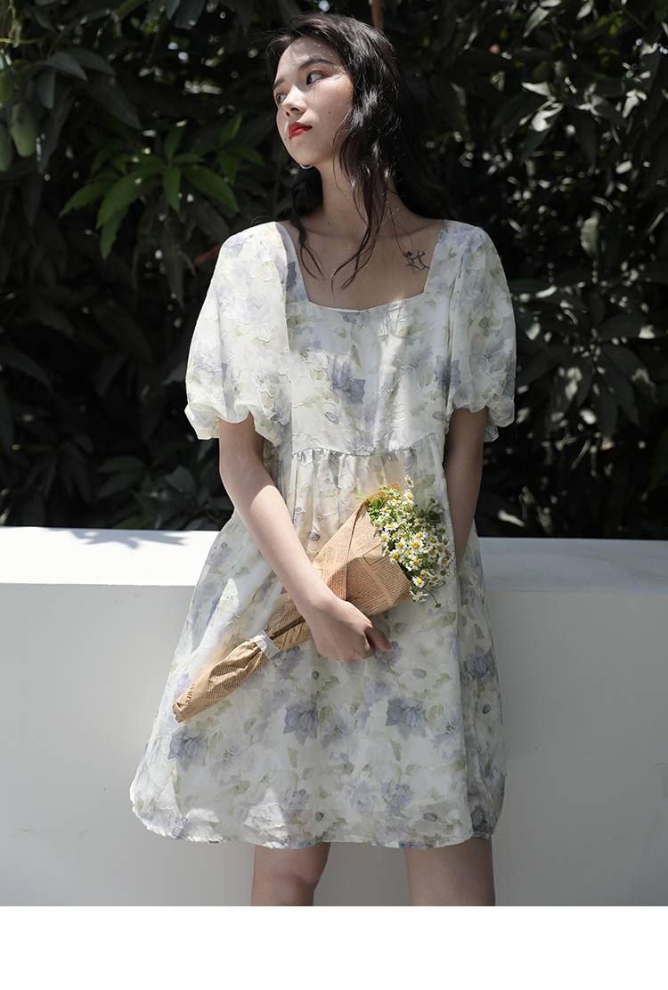 夏季连衣裙女法式设计感小众高腰茶歇裙轻熟风绣花公主裙子