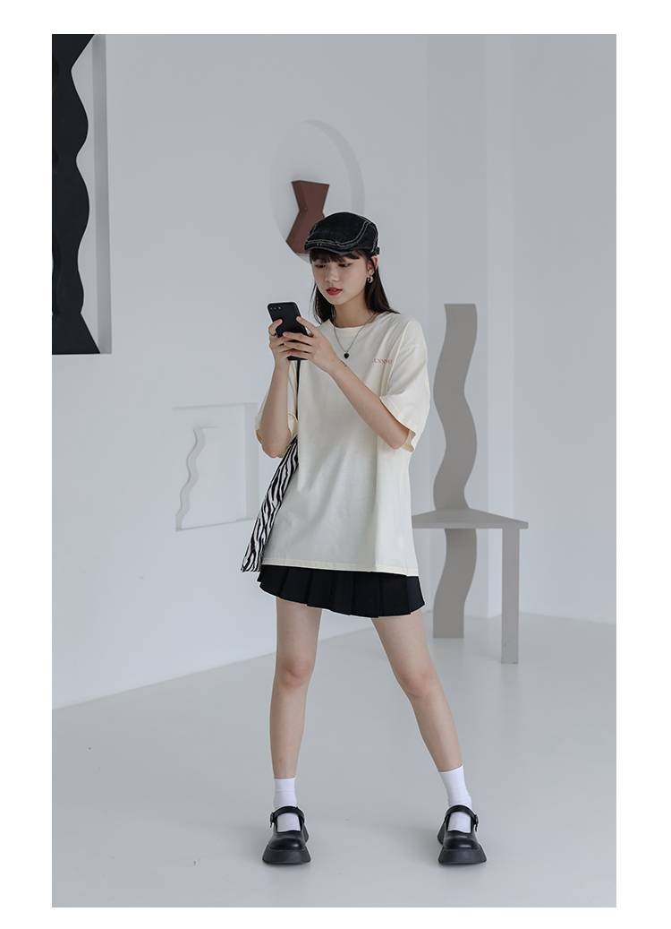 字母涂鸦印花短袖T恤女白色夏季薄款设计感小众宽松休闲上衣新款