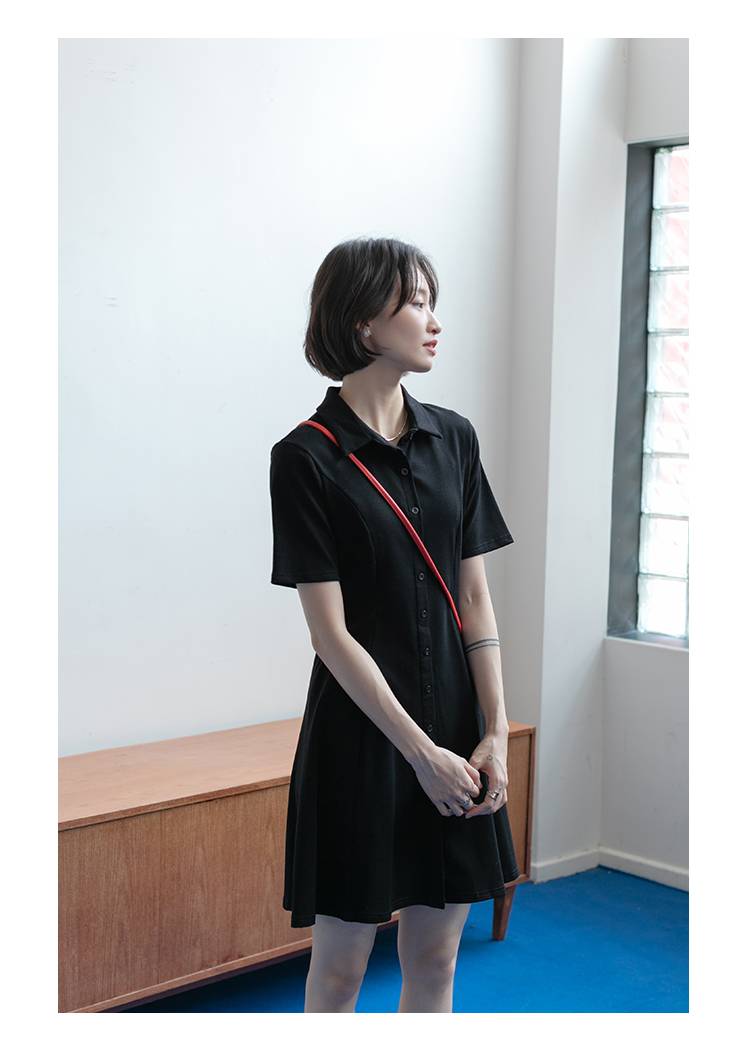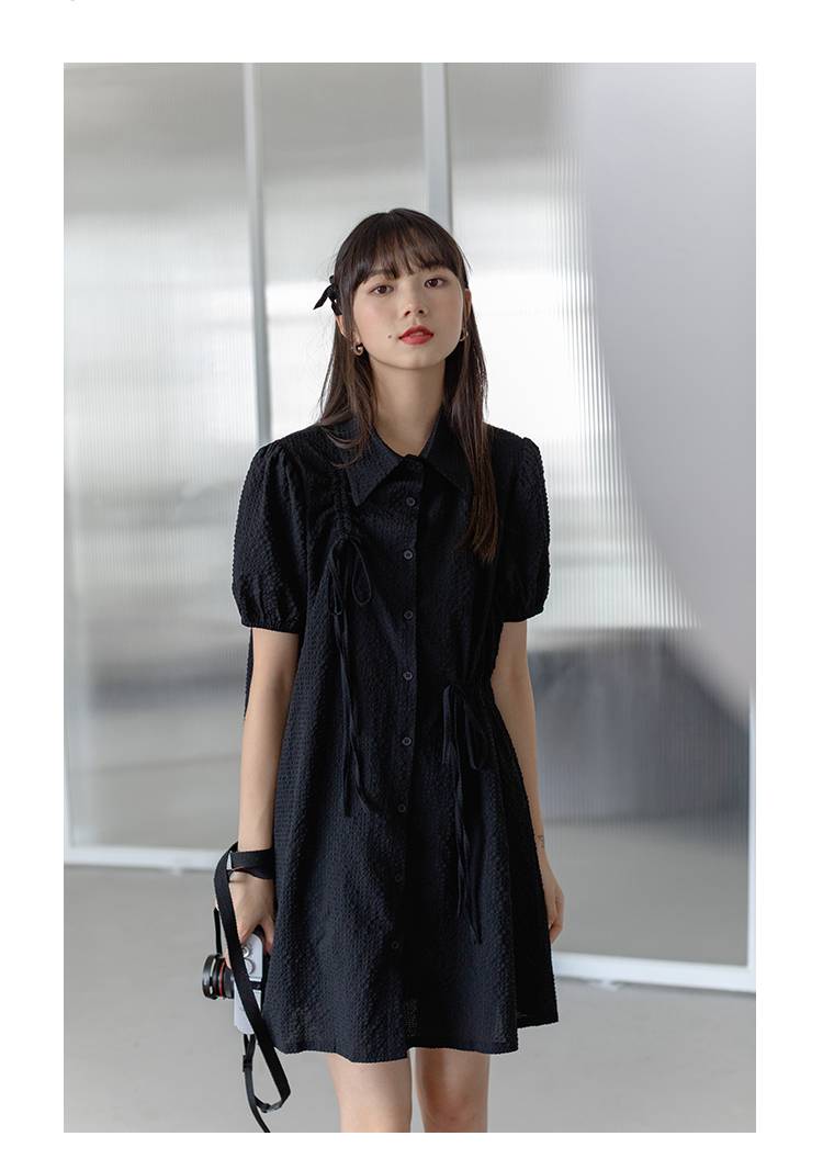 翻领肌理感连衣裙女抽绳设计感夏季新款宽松polo绿色短裙小个子