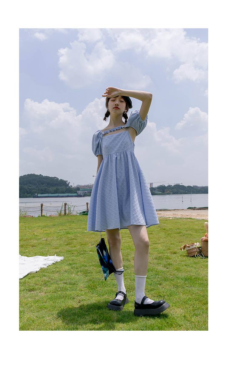 可拆卸泡泡袖连衣裙