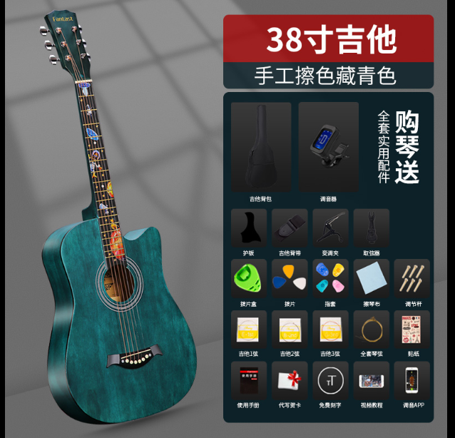 41寸网红吉他初学者学生女男新手民谣个性木吉它38寸单板吉他星空