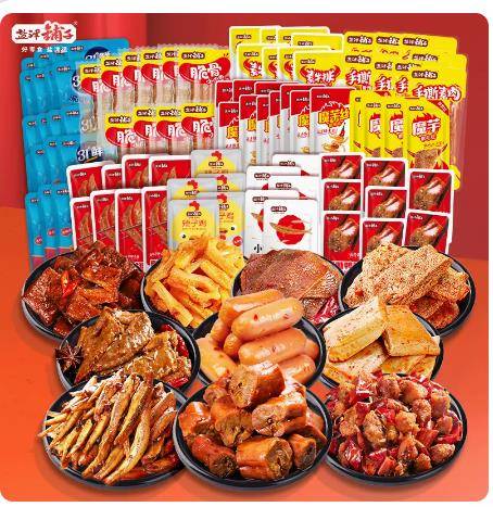 盐津铺子零食大礼包约100包1085g鸭脖鸭翅魔芋爽素肉豆干 1件装