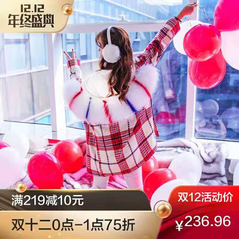 2018新款冬季大毛领棉服中长款韩版格子羊羔毛外套 238.00 已售:0件