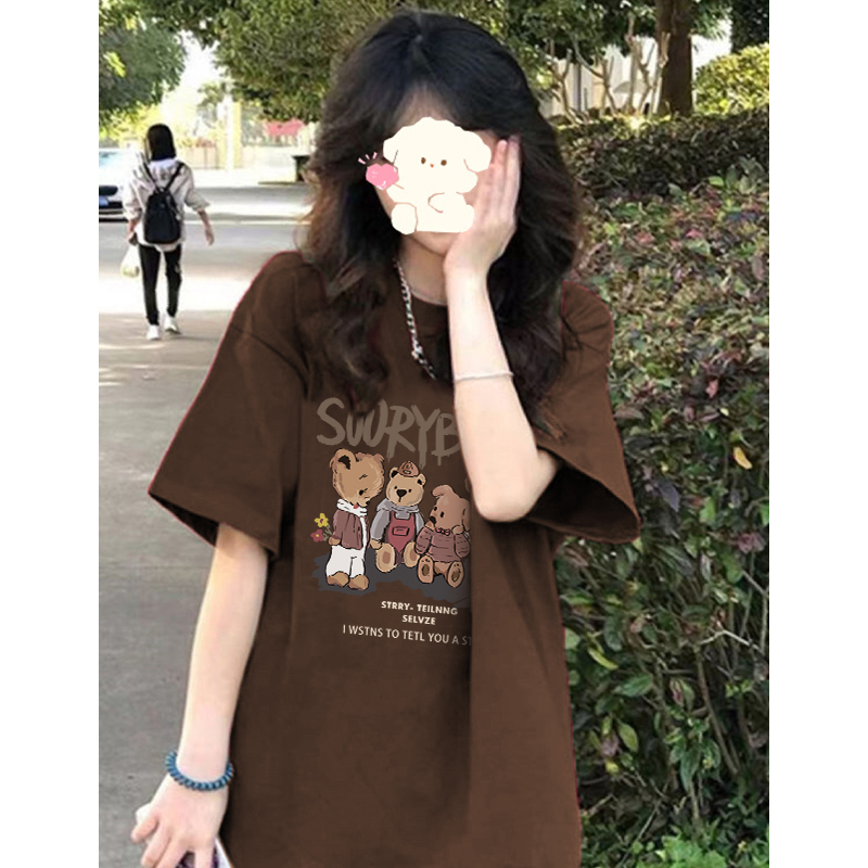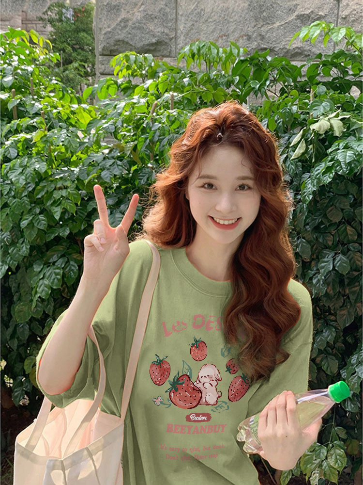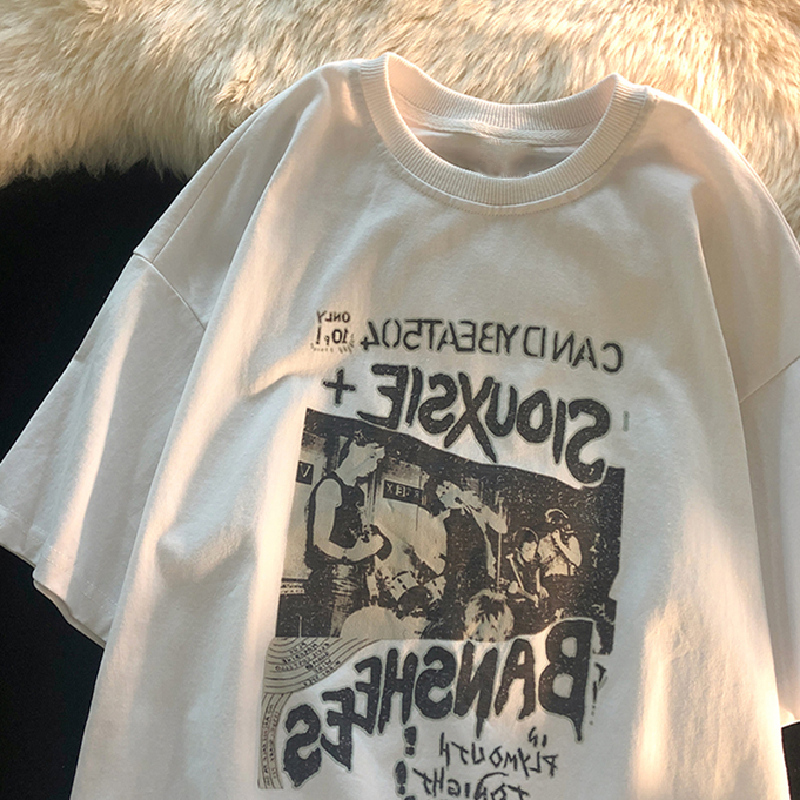 美式复古少女感印花短袖纯棉T恤男女情侣宽松百搭oversize宽松潮