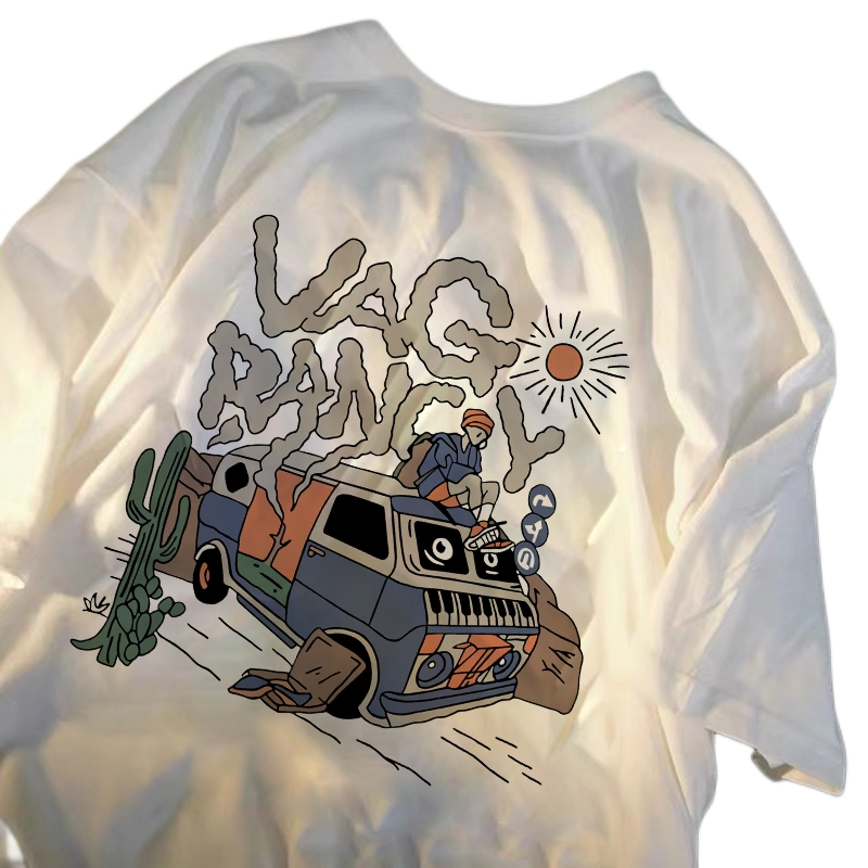 短袖t恤男2023夏季新款复古日系潮牌衣服宽松ins潮流五分半袖火车