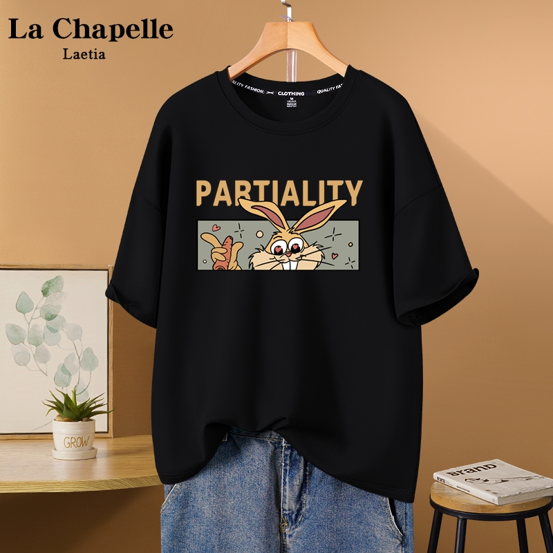 拉夏贝尔短袖t恤女2023年新款夏季黑色潮牌体恤纯棉兔子正肩上衣X