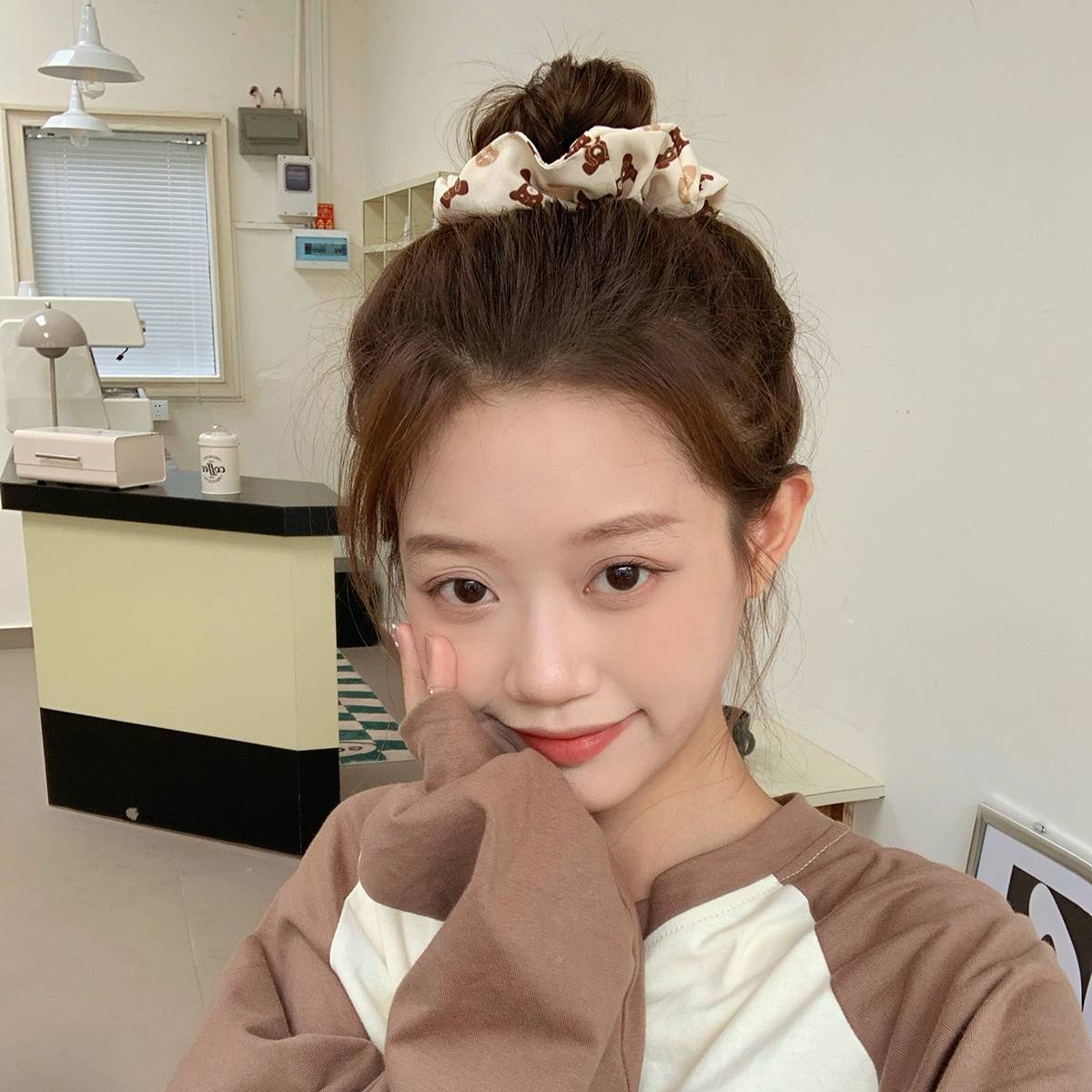 秋季新款咖色系发圈小熊花朵头绳大肠发圈网红少女发饰日韩