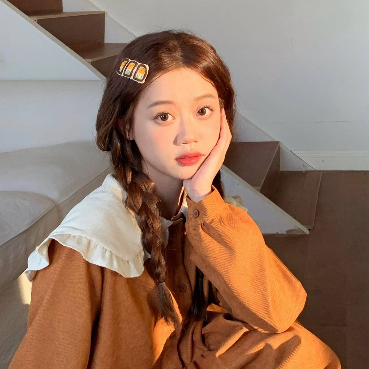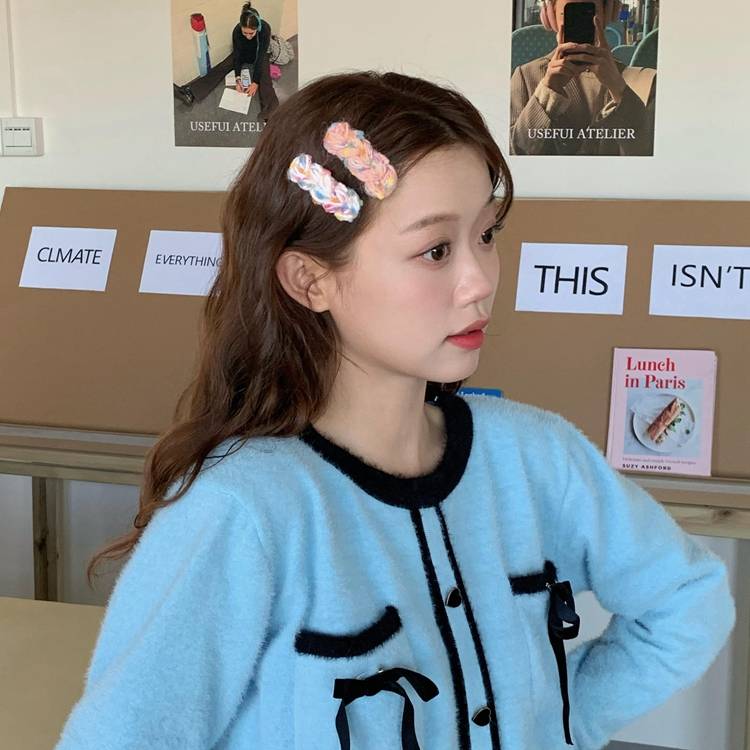 温柔彩虹小香风编织发夹麻花辫刘海夹侧边夹子少女心秋冬发饰