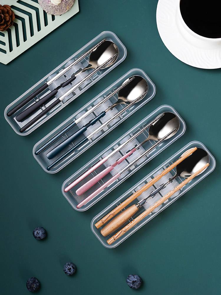 家家乐筷子勺子套装韩式可爱不锈钢汤勺一人食学生儿童便携餐具盒