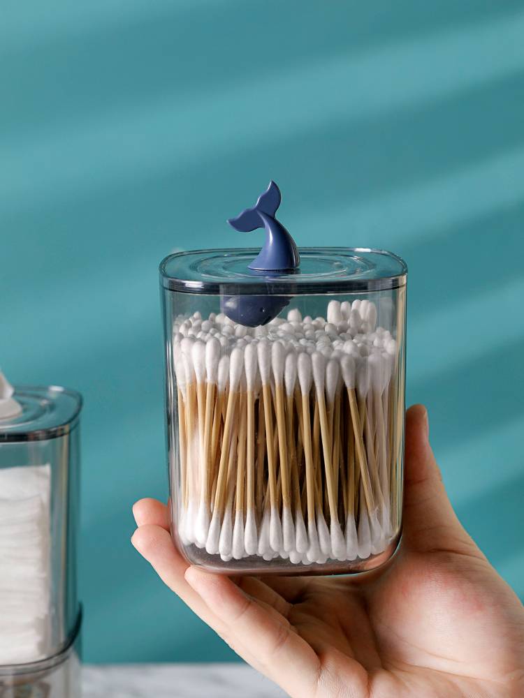 家家乐桌面化妆棉收纳盒带盖口红盒女生宿舍梳妆台透明耳环棉签盒