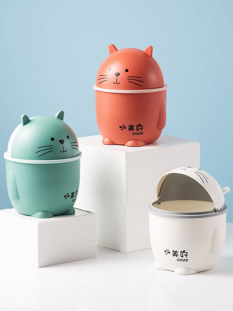 家家乐桌面垃圾桶可爱小号宿舍桌上创意网红迷你卧室带盖收纳桶小