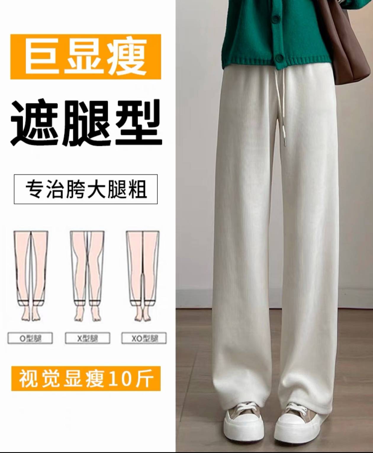 雪尼尔阔腿裤子女春秋冬款2024新款小个子垂感休闲加绒糯米直筒裤