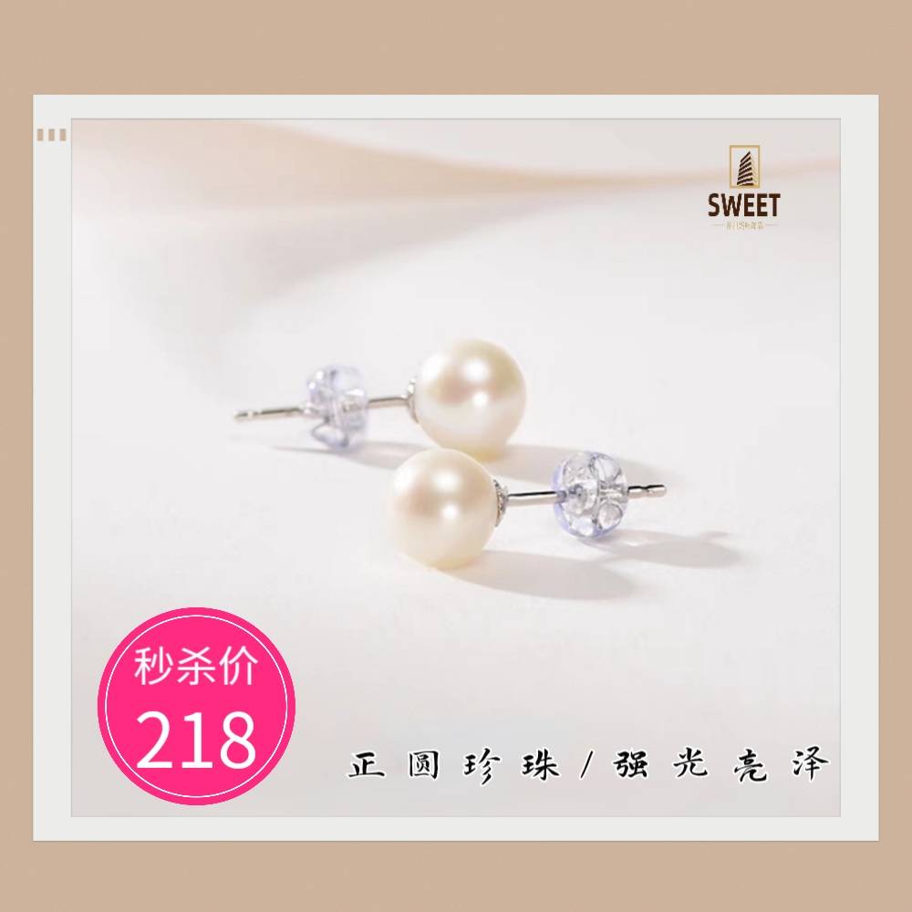 珍珠耳钉正圆淡水珍珠耳饰