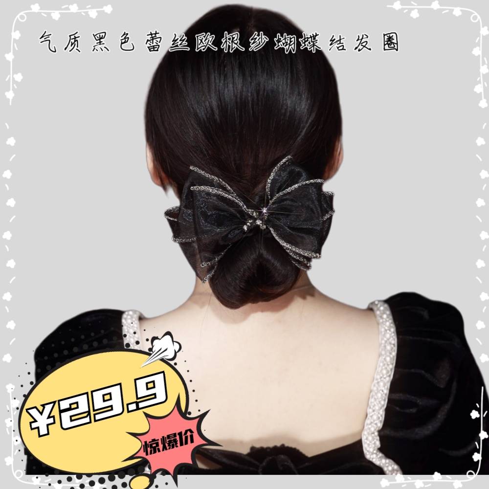 气质黑色蕾丝欧根纱蝴蝶结发圈
