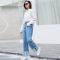 极简港味复古chic翻边牛仔长裤女2018秋新款女装高腰直筒阔裤