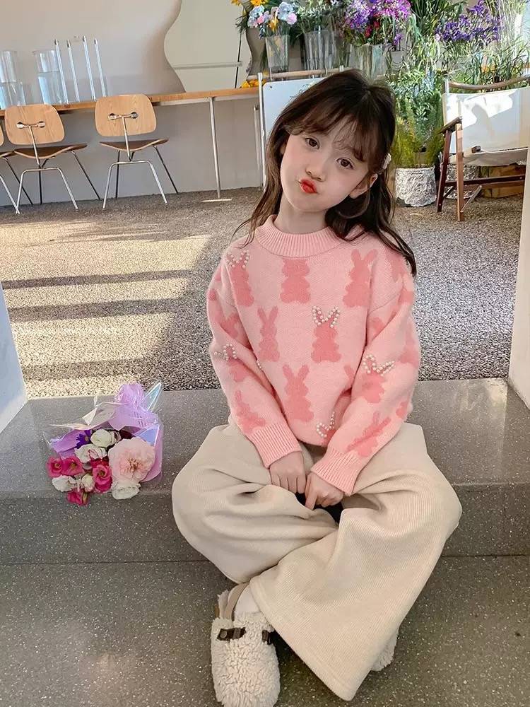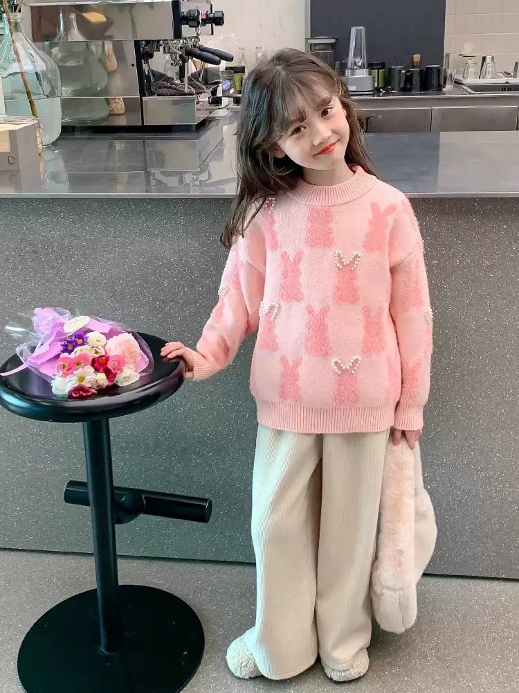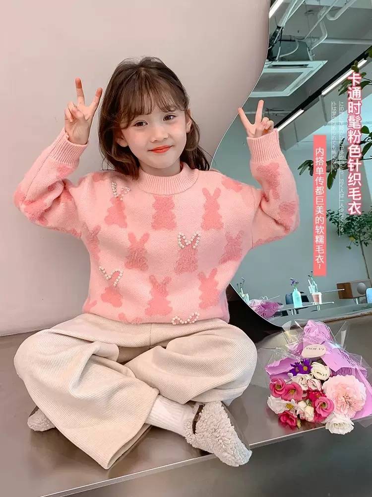 女童针织毛衣秋冬装2024新款儿童加厚冬季打底衫小女孩线衫大童