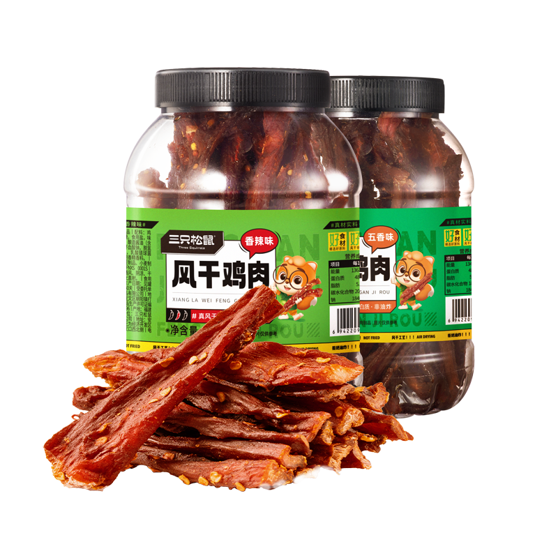三只松鼠风干鸡肉条250g*1罐鸡肉条五香香辣味鸡肉类零食