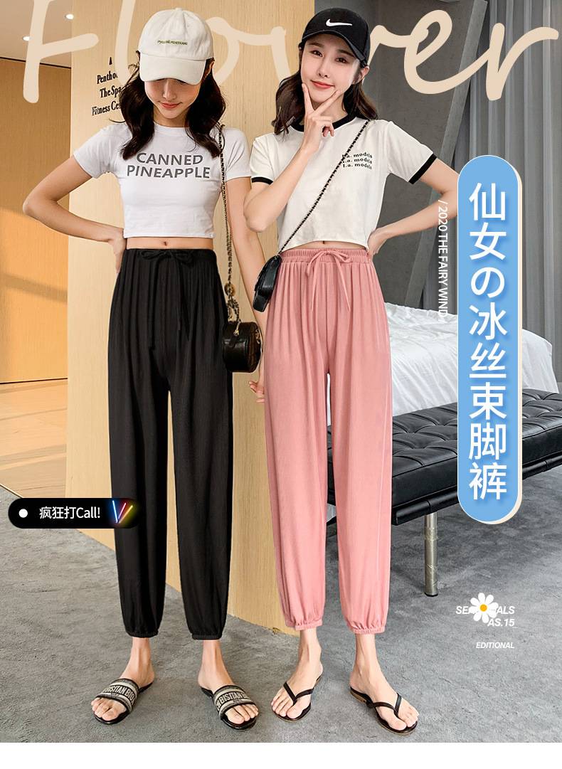 2021年夏季新款冰丝裤女高腰垂感薄款防蚊显瘦宽松束脚阔腿