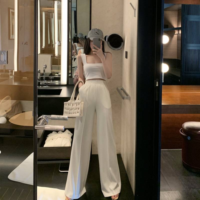 实拍裤子女2021年春季韩版高腰垂坠感拖地裤长裤阔腿休闲裤k273