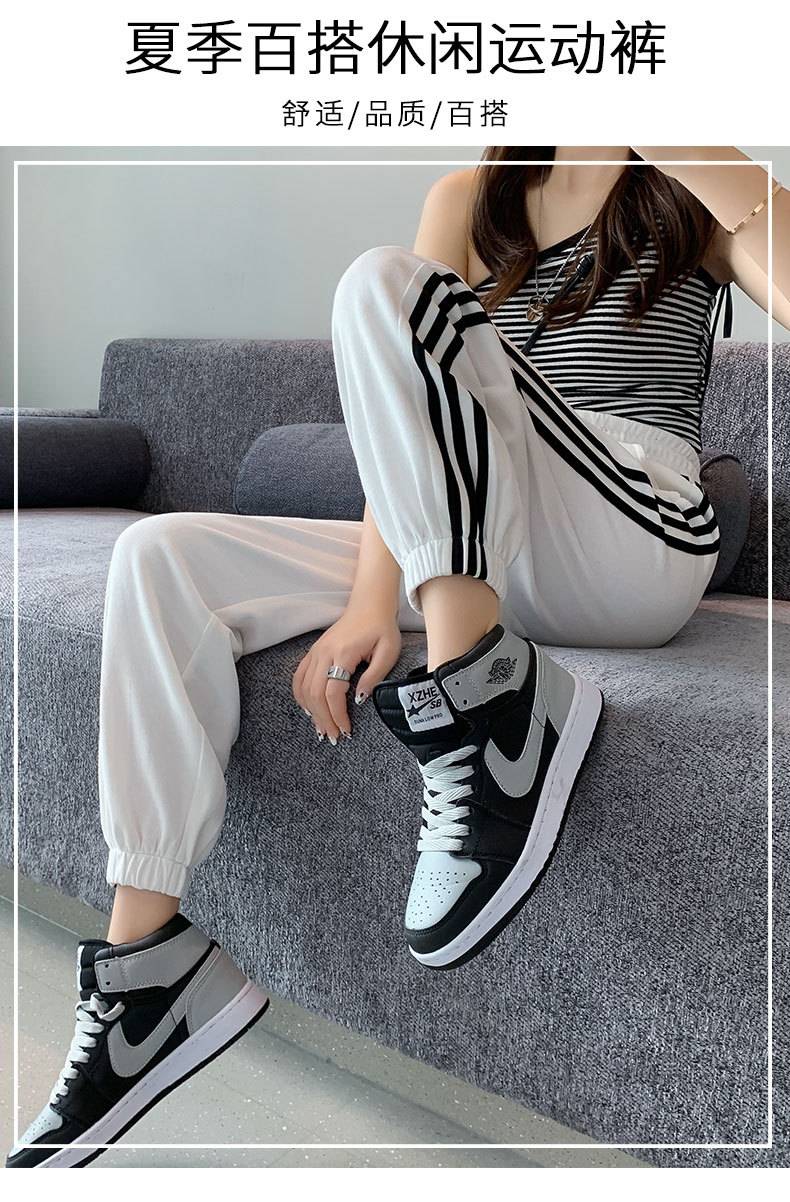 白色运动裤女2021夏季宽松三条杠卫裤九分哈伦裤小个子休闲束脚裤
