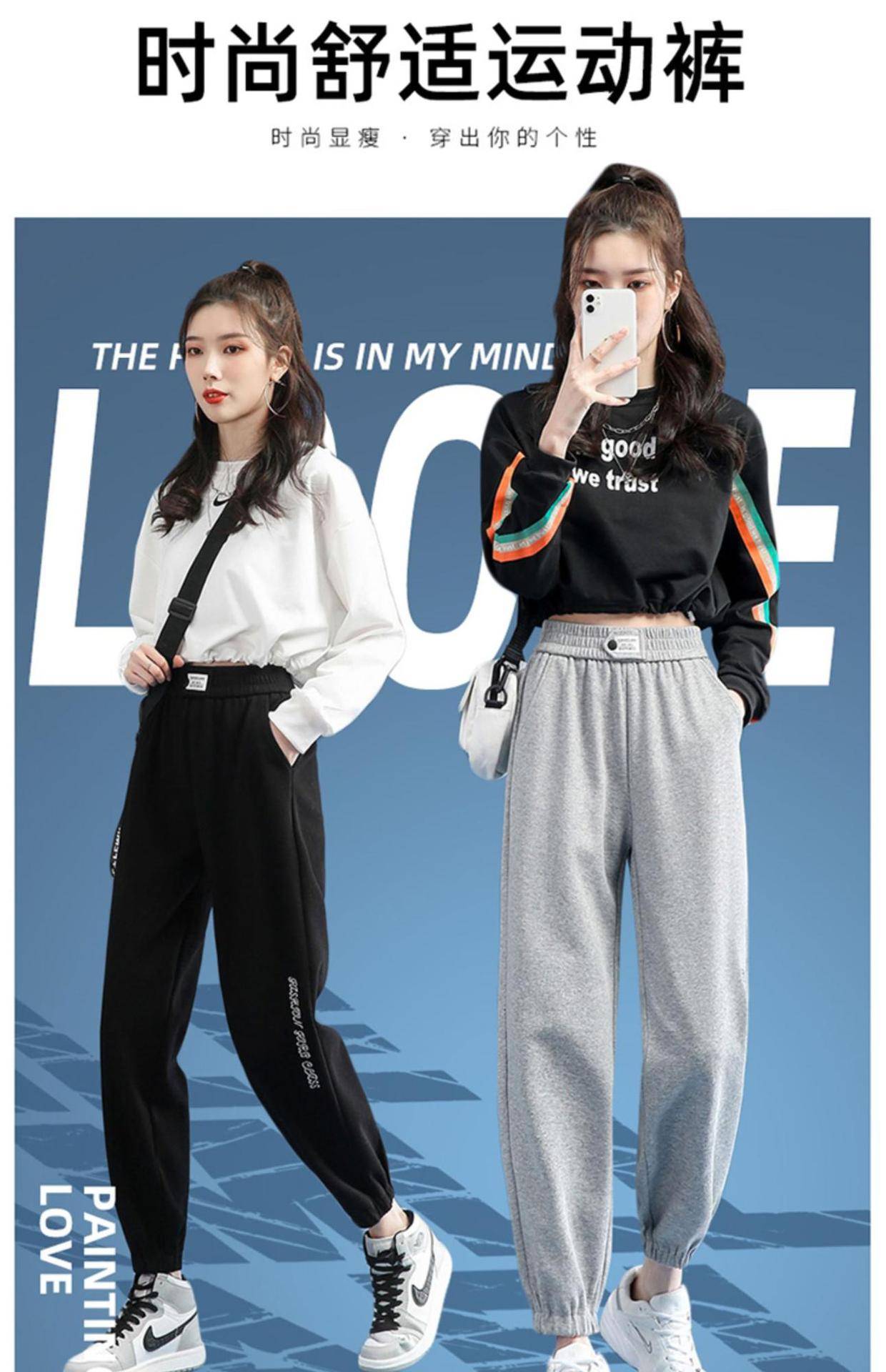 2021灰色运动裤女新款宽松束脚春夏季卫裤女裤子学生百搭哈伦裤潮