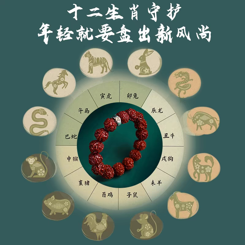2025机刷玉化金刚菩提子手串十二生肖守护神文玩核桃盘玩佛珠手链