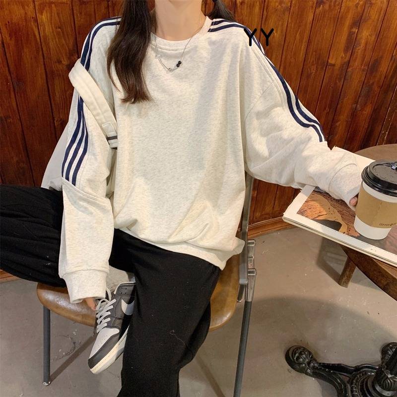 学院条纹拼接宽松卫衣长袖韩版卫衣 52.00 已售:0件