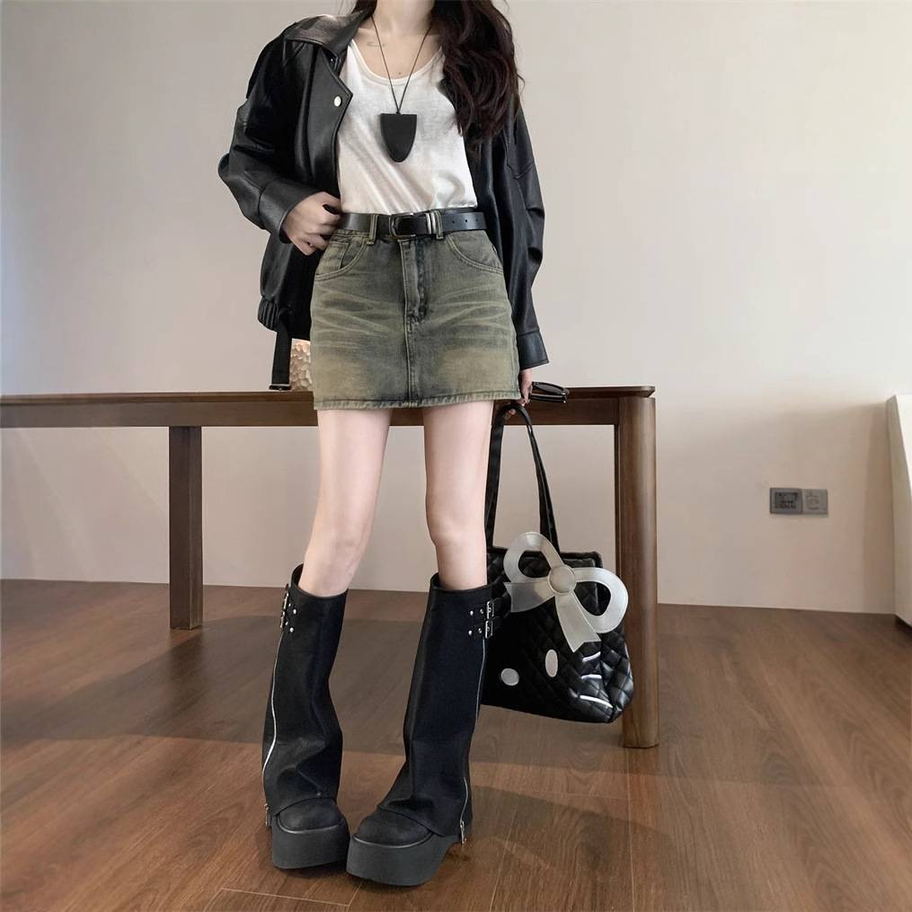 美式复古牛仔半身裙秋冬辣妹高腰a字包臀防走光短裙 99.00 已售:0件
