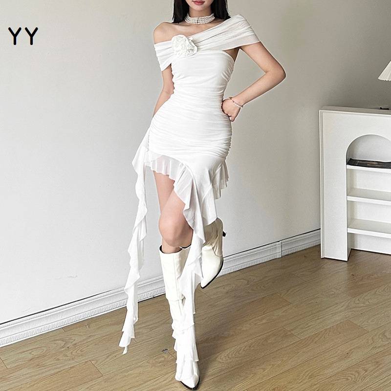 2024跨境欧美风春季新款纯色修身高腰时尚一字领抹胸连衣裙 520.00 已售:0件