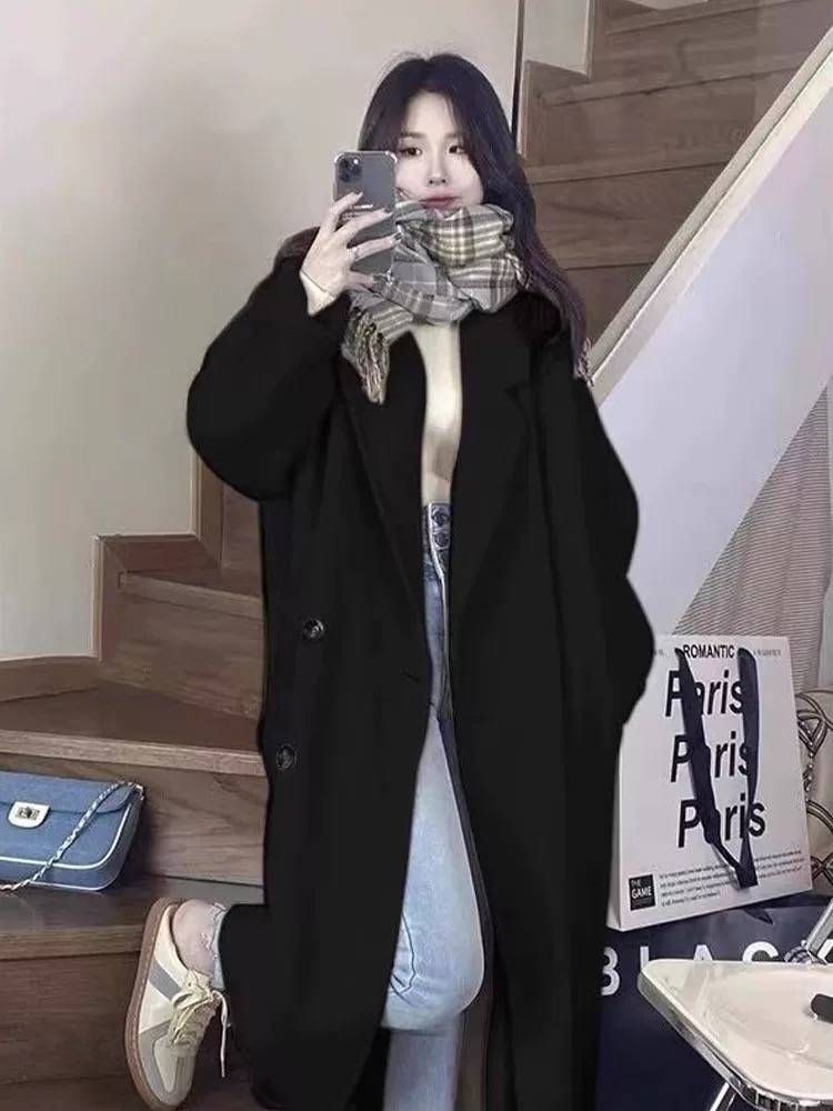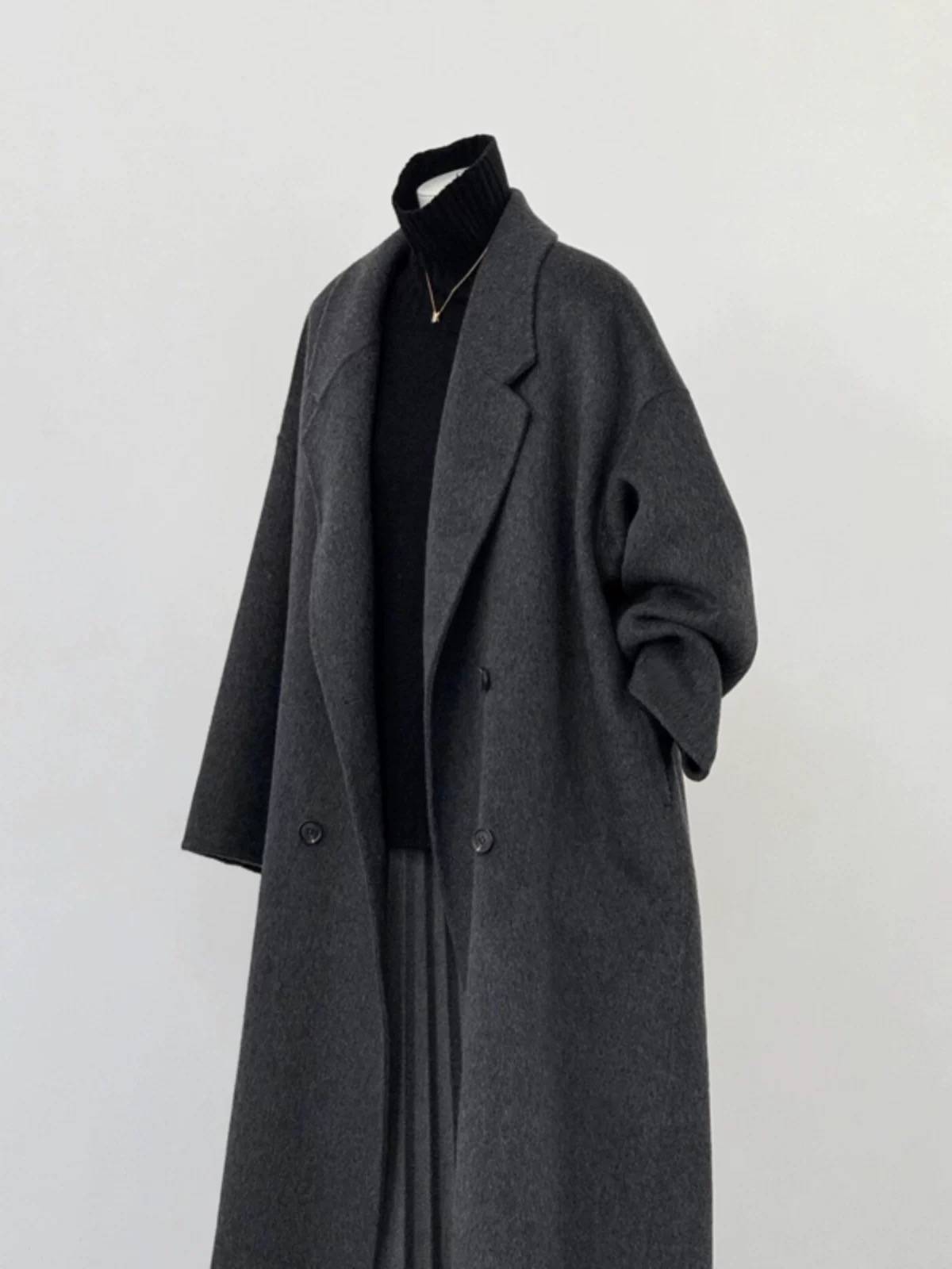 深灰色双面羊绒大衣女2024秋冬新款小个子宽松高级感休闲毛呢外套 148.00 已售:1件