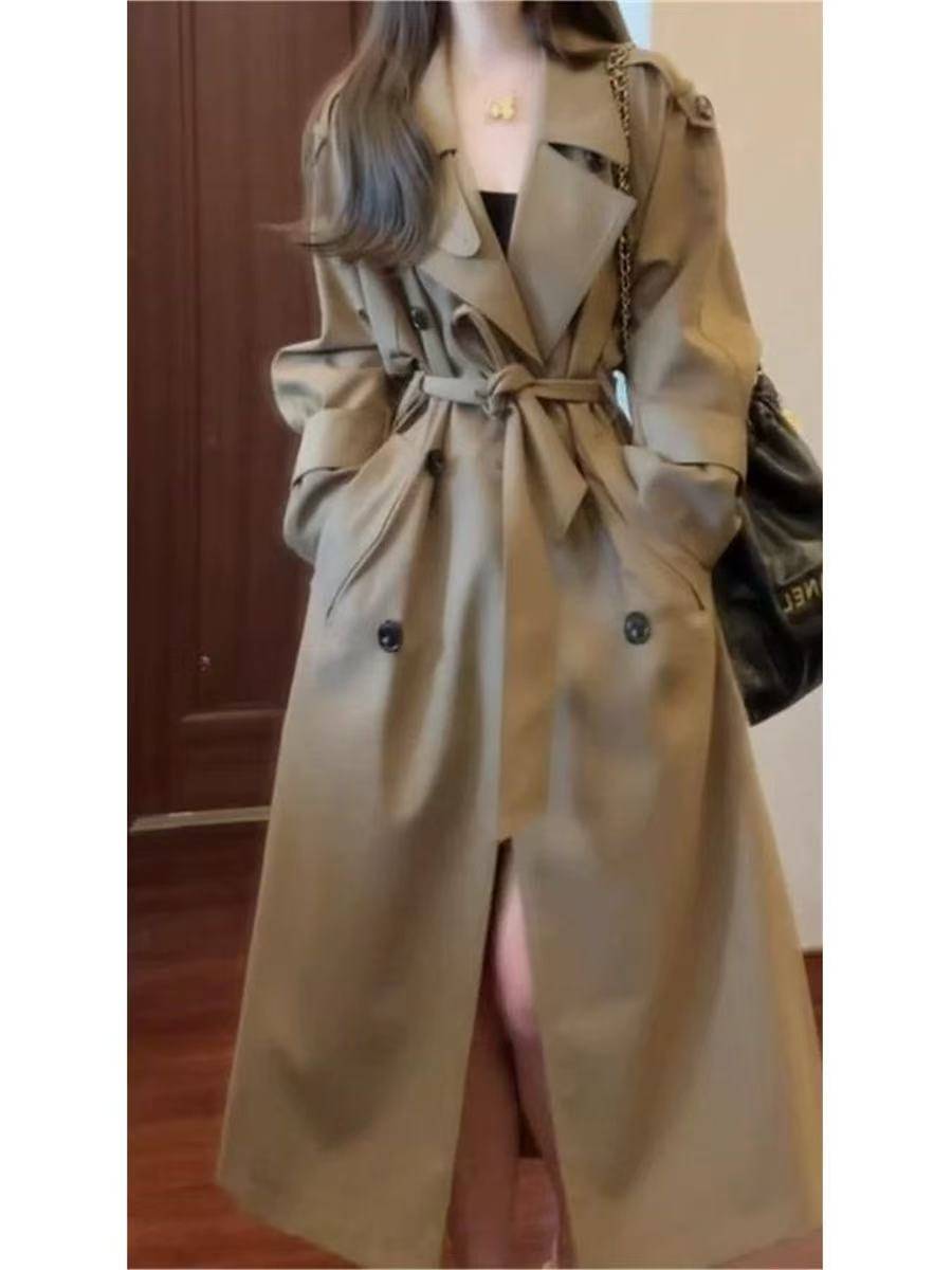 韩系卡其色翻领中长款风衣女春秋高级感气质系带收腰大风衣外套秋 175.00 已售:0件