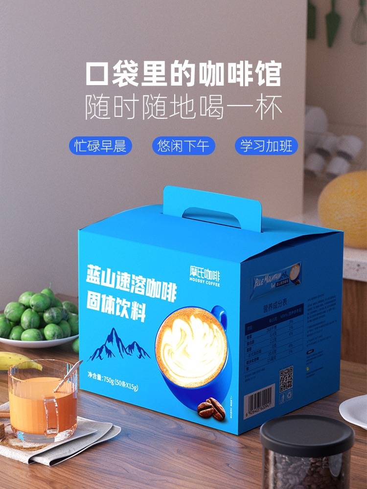 摩氏官方旗舰店蓝山风味咖啡三合一特浓速溶提神不苦偏甜奶香条装