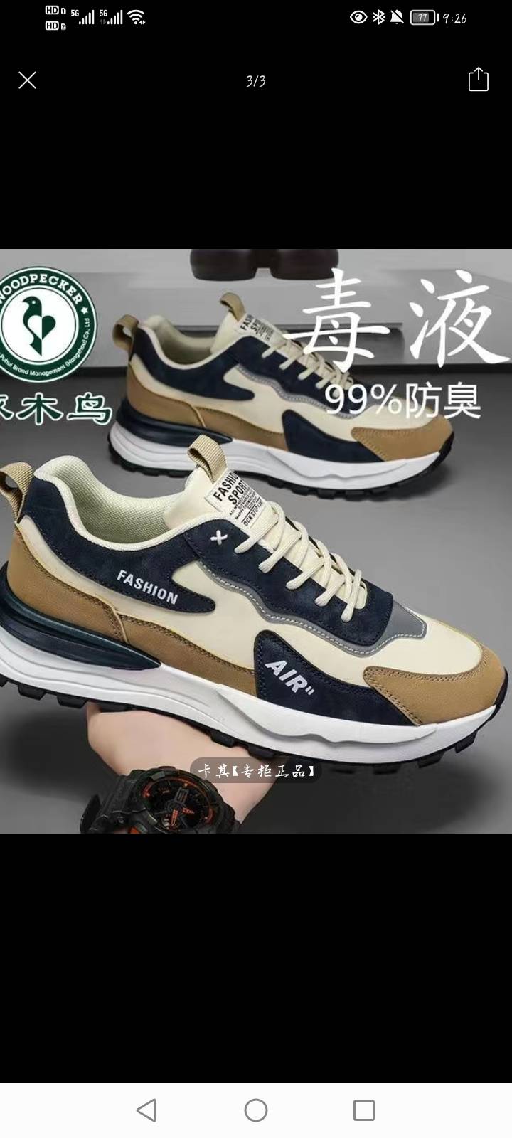 啄木鸟正品男鞋秋季新款休闲运动鞋轻便软底防滑皮面防水跑步潮鞋