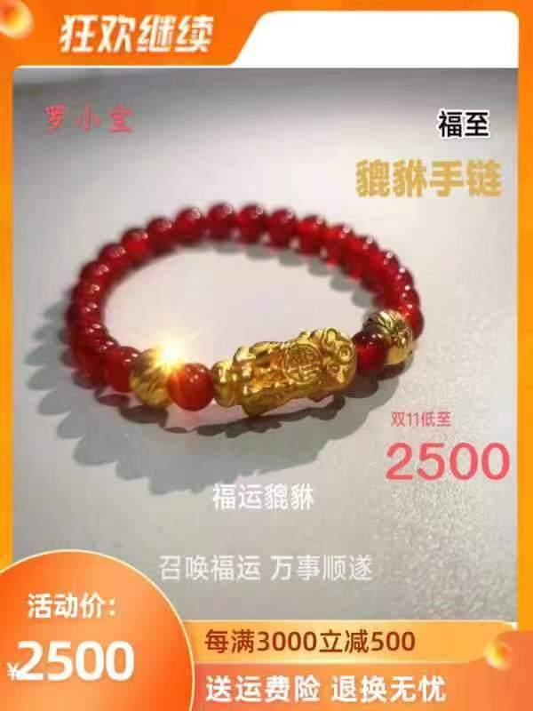 貔貅招财手链红玛瑙越南流沙金首饰女本命年假黄金生肖朱砂手串