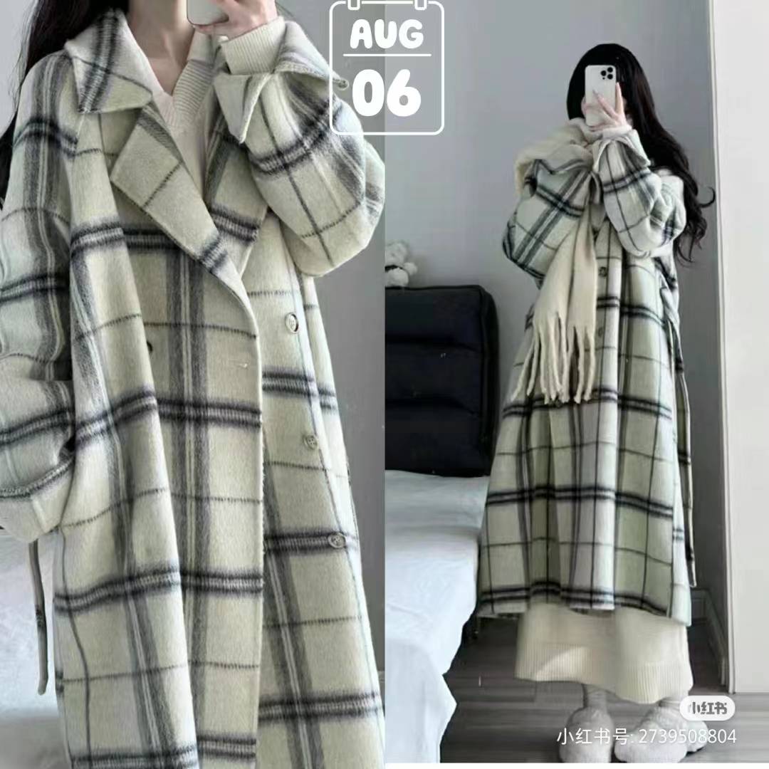 格子双面羊绒大衣女高级感2023年新款羊毛呢子外套冬季长款