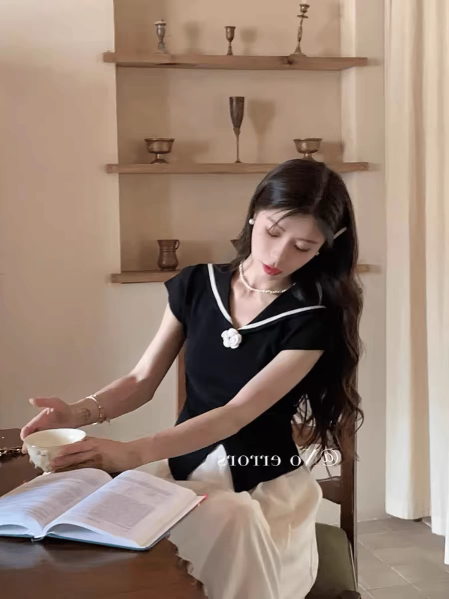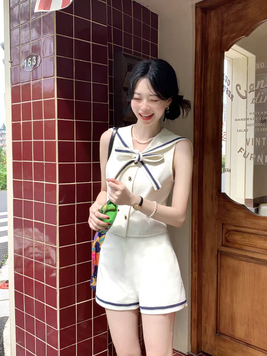 航海日记 2024夏季新款时尚高级感白色海军领套装