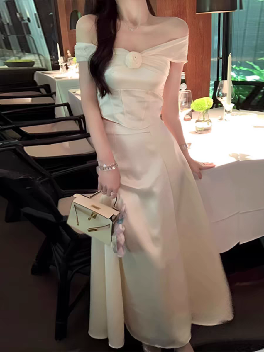 温柔风法式高级感气质设计感小众一字肩上衣高腰半身裙两件套装裙