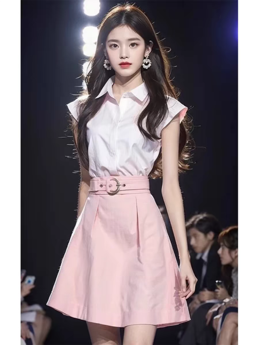 纯欲风辣妹套装女2024夏季新款韩版白色衬衫上衣高腰半身裙两件套