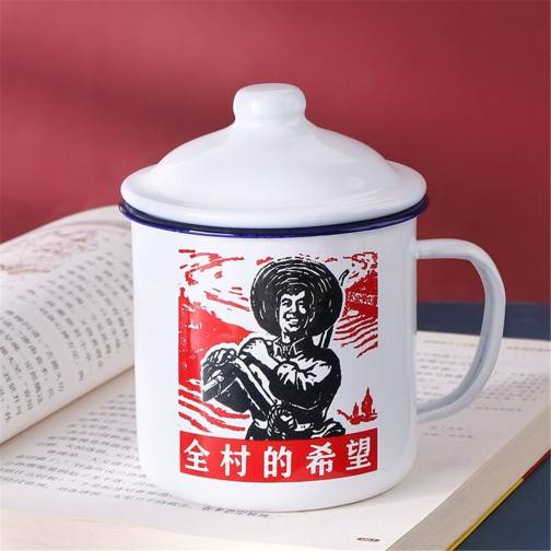 搪瓷杯加厚带盖水杯子家用大茶杯老式铁茶缸子怀旧复古马克杯