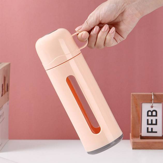 双层玻璃杯泡茶杯子 大容量简约带盖便携式女隔热防烫带提手水杯