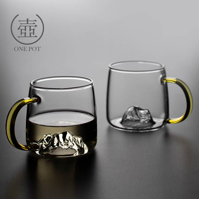 创意带把山峦玻璃杯加厚耐热泡茶杯办公花茶杯家用马克杯喝水杯子