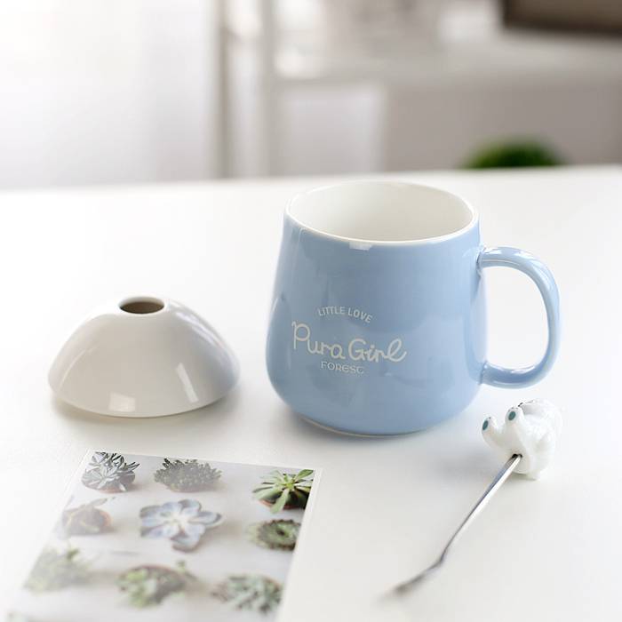 卡通可爱萌女陶瓷杯子创意带盖勺马克杯早餐牛奶咖啡杯办公室水杯